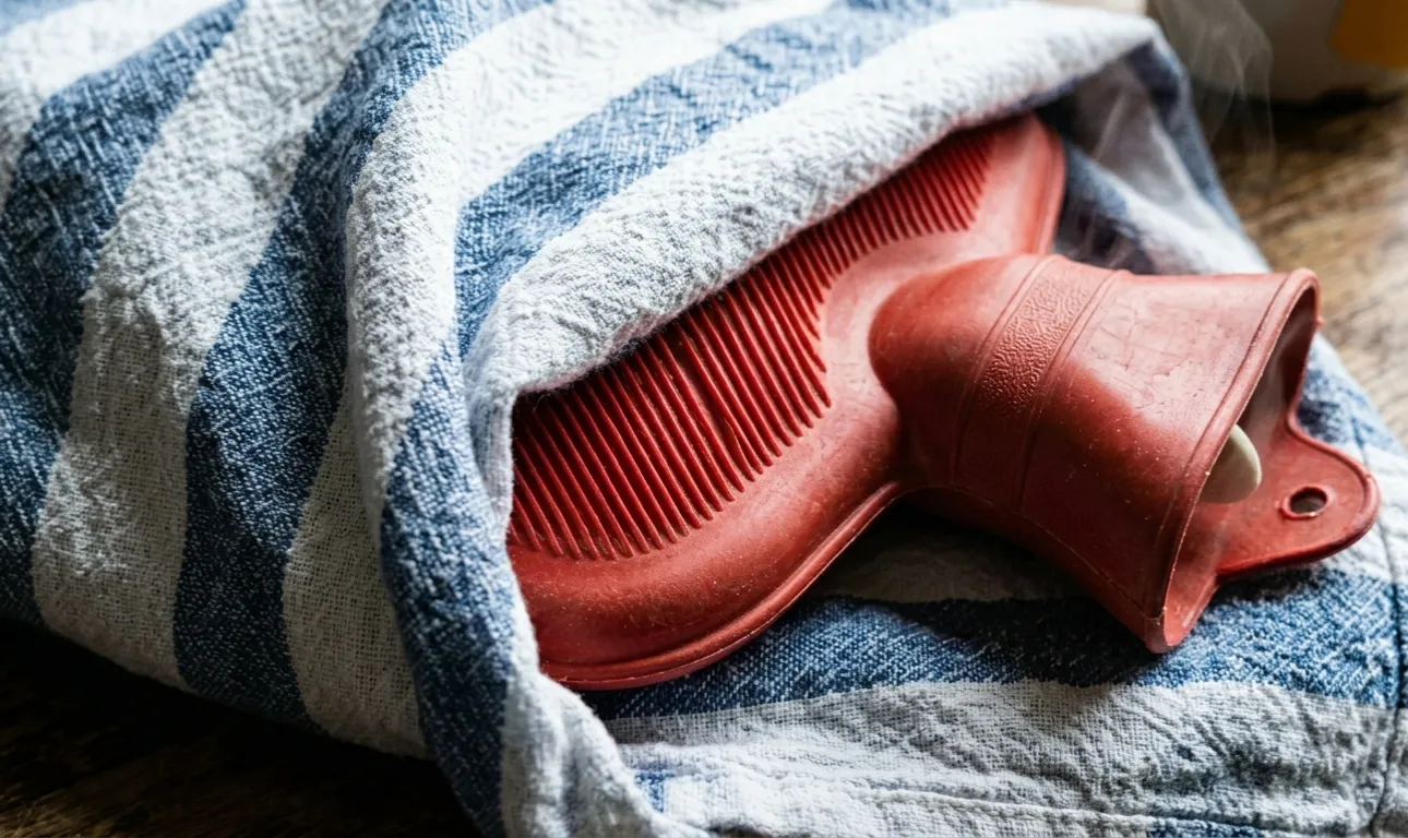 Een warm kompres op het schoudergewricht helpt om gespannen weefsels zachtjes te verwarmen en te ontspannen